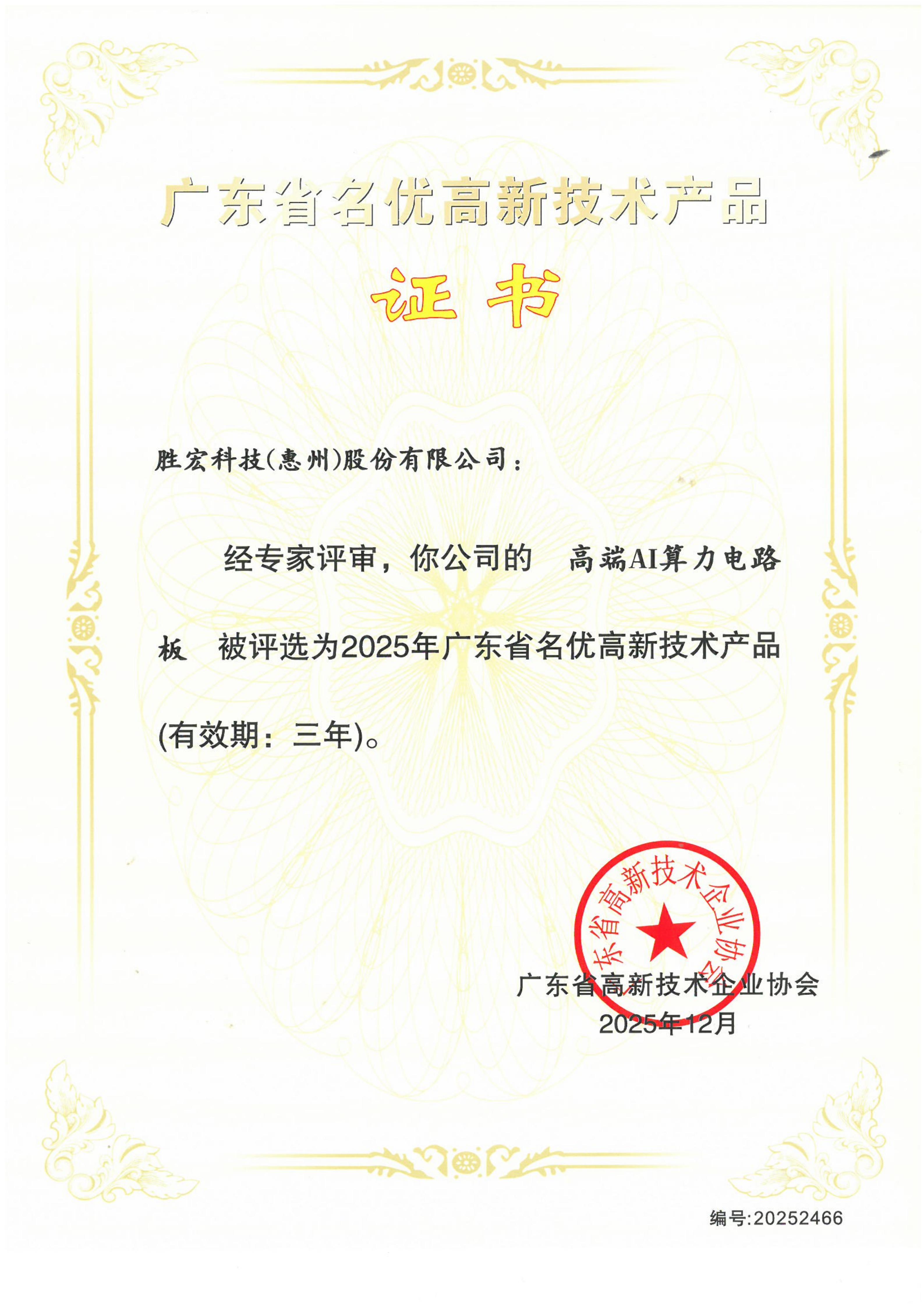 “高端AI算力電路板”高新技術(shù)產(chǎn)品證書