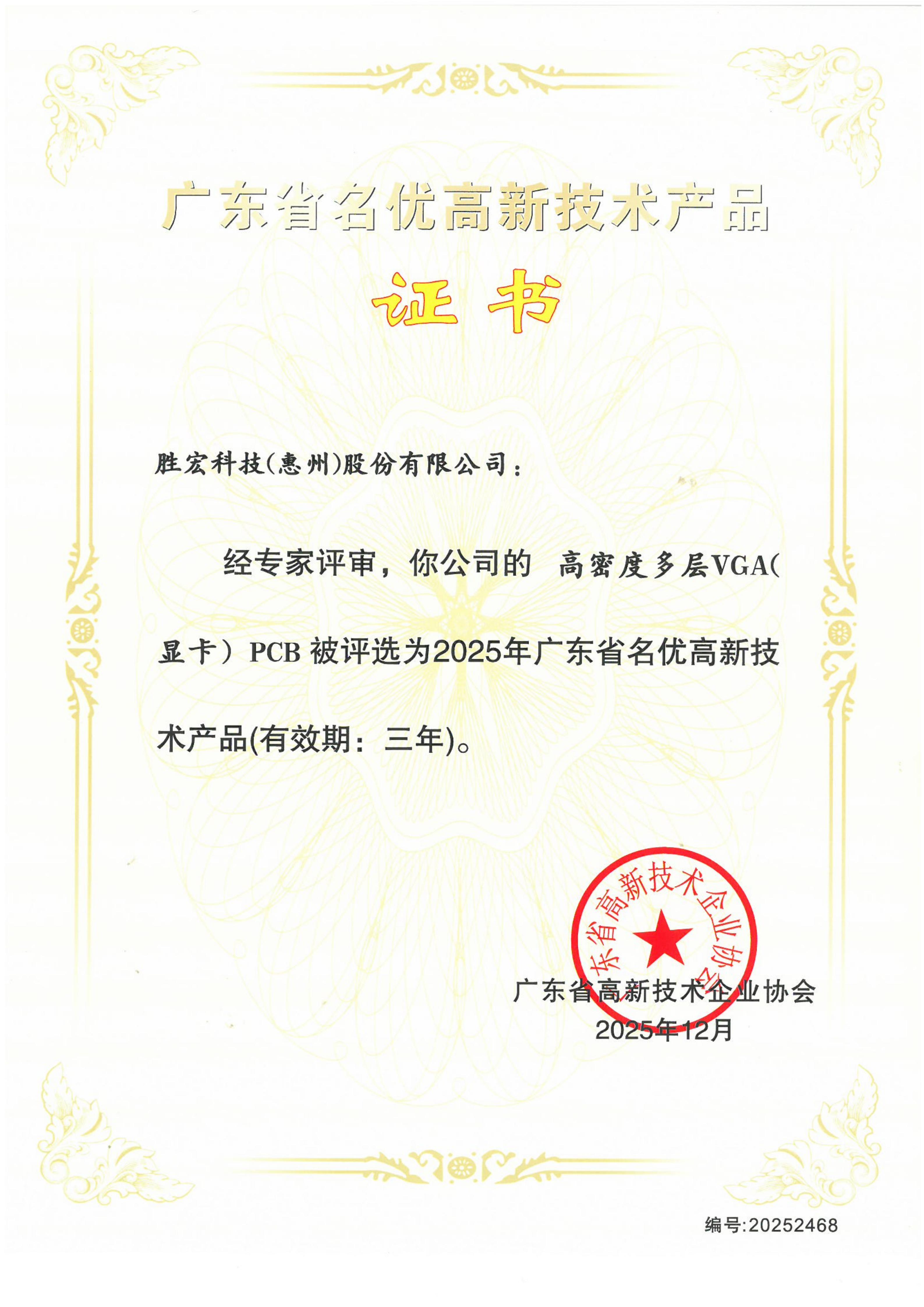 “高密度多層VGA(顯卡)”高新技術(shù)產(chǎn)品證書